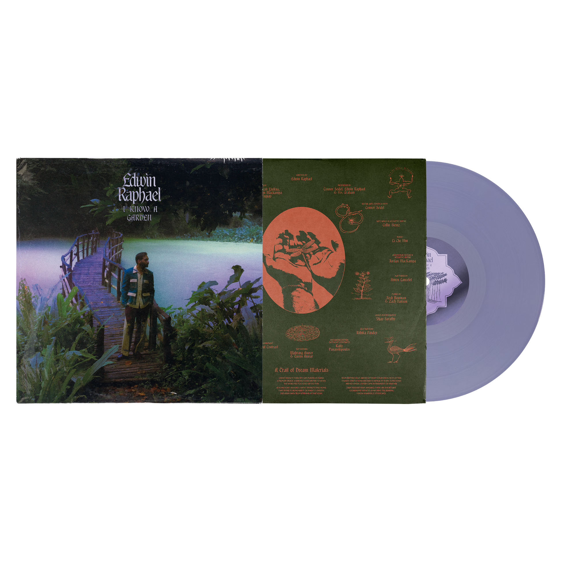 The new record, I Know A Garden, pressed on a limited edition periwinkle vinyl.